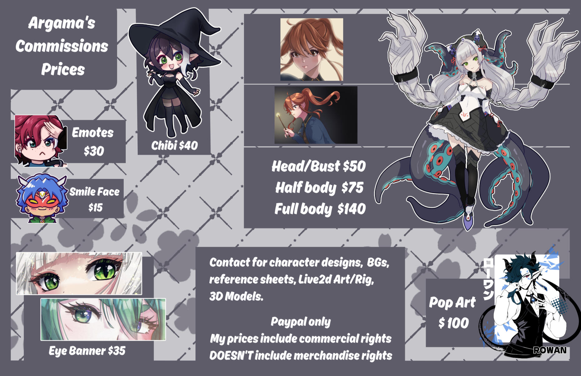 | Live2D Artwork | Half Body $400, Full $500 | | |